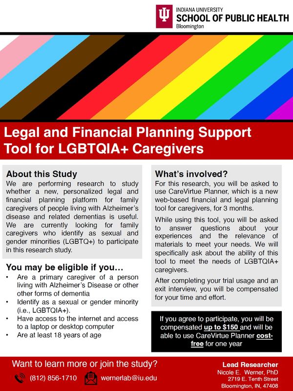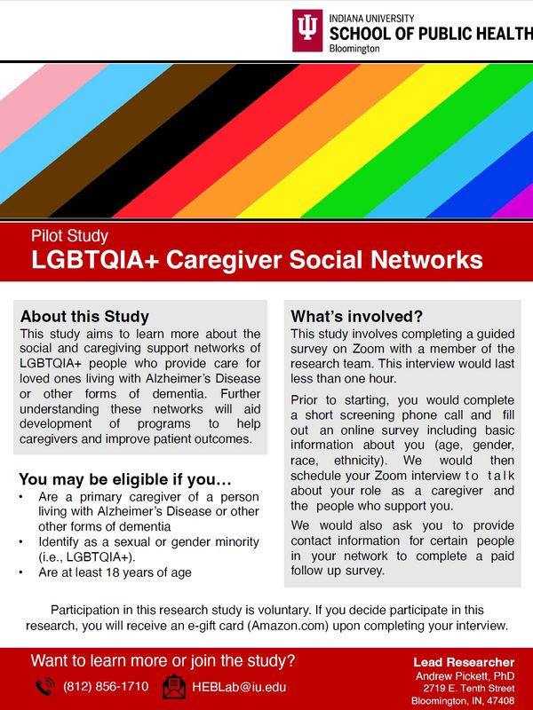 We're working with some of the best researchers on LGBTQ+ aging across the country to bring you additional opportunities to participate in research for us by us! There are several upcoming studies related to caregiving that you may be eligible for. These studies are not affiliated with Q SNAPS so please contact them directly. You can find more information about the study below!